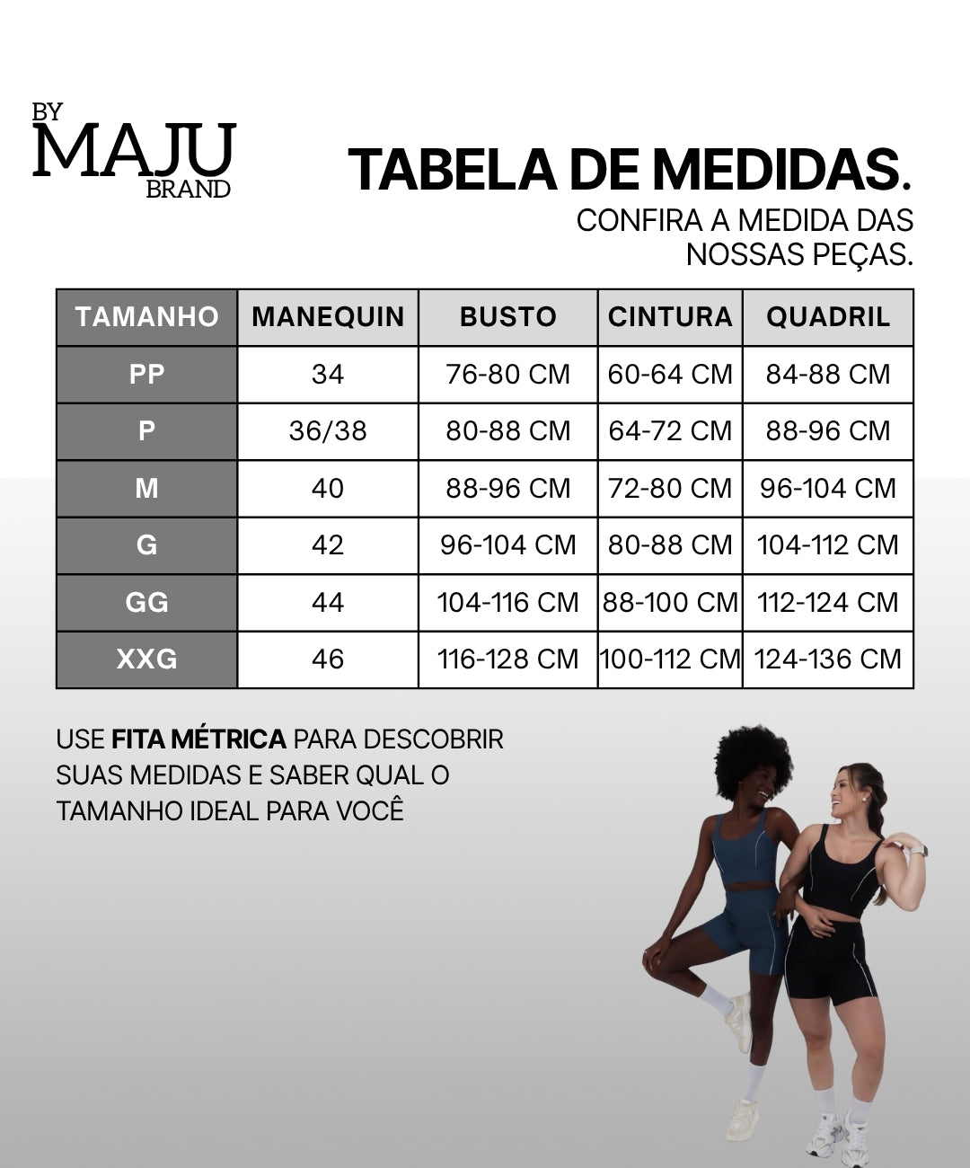 Busto: 86cm | Cintura: 69cm | Quadril: 94cm
